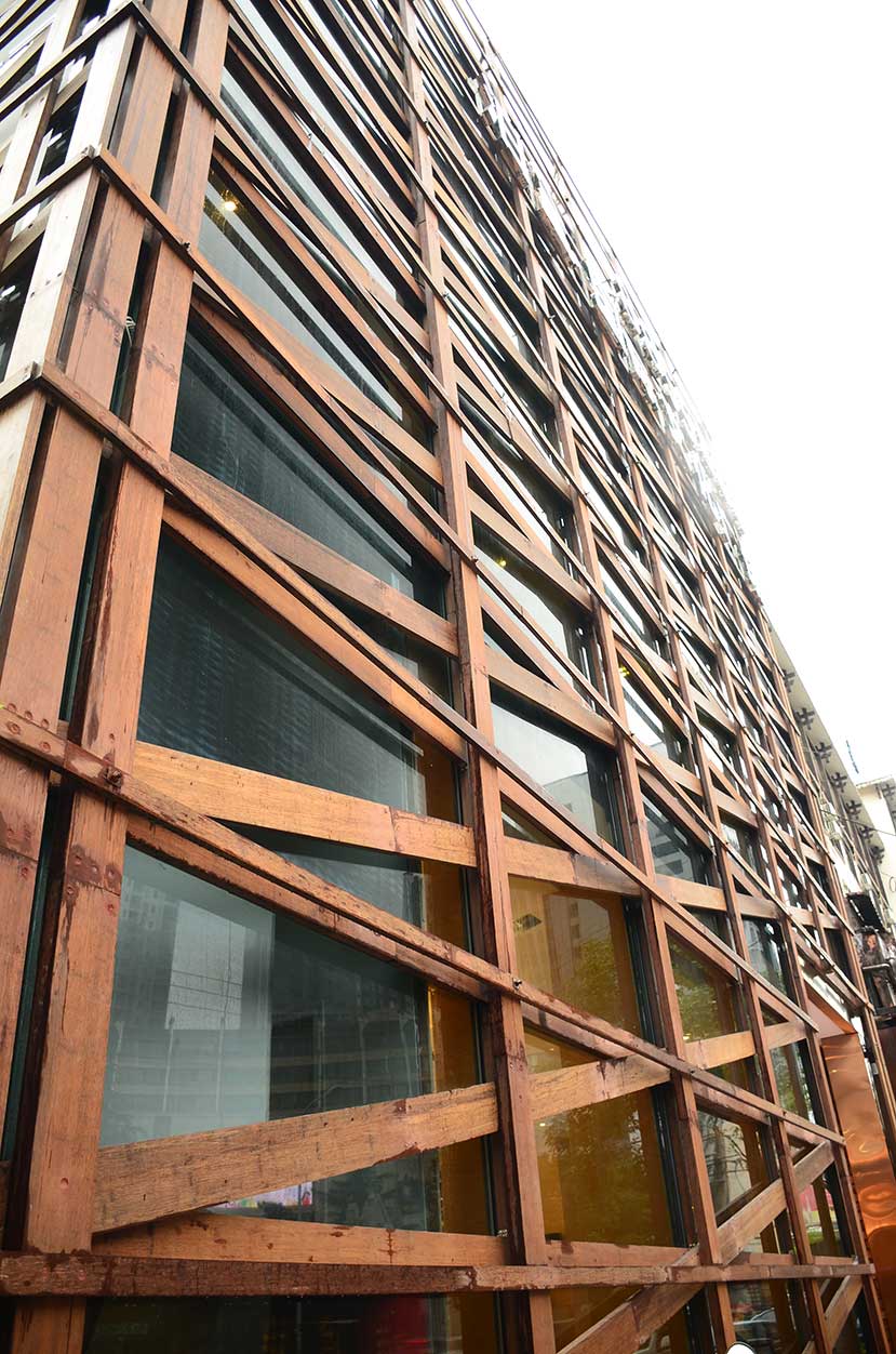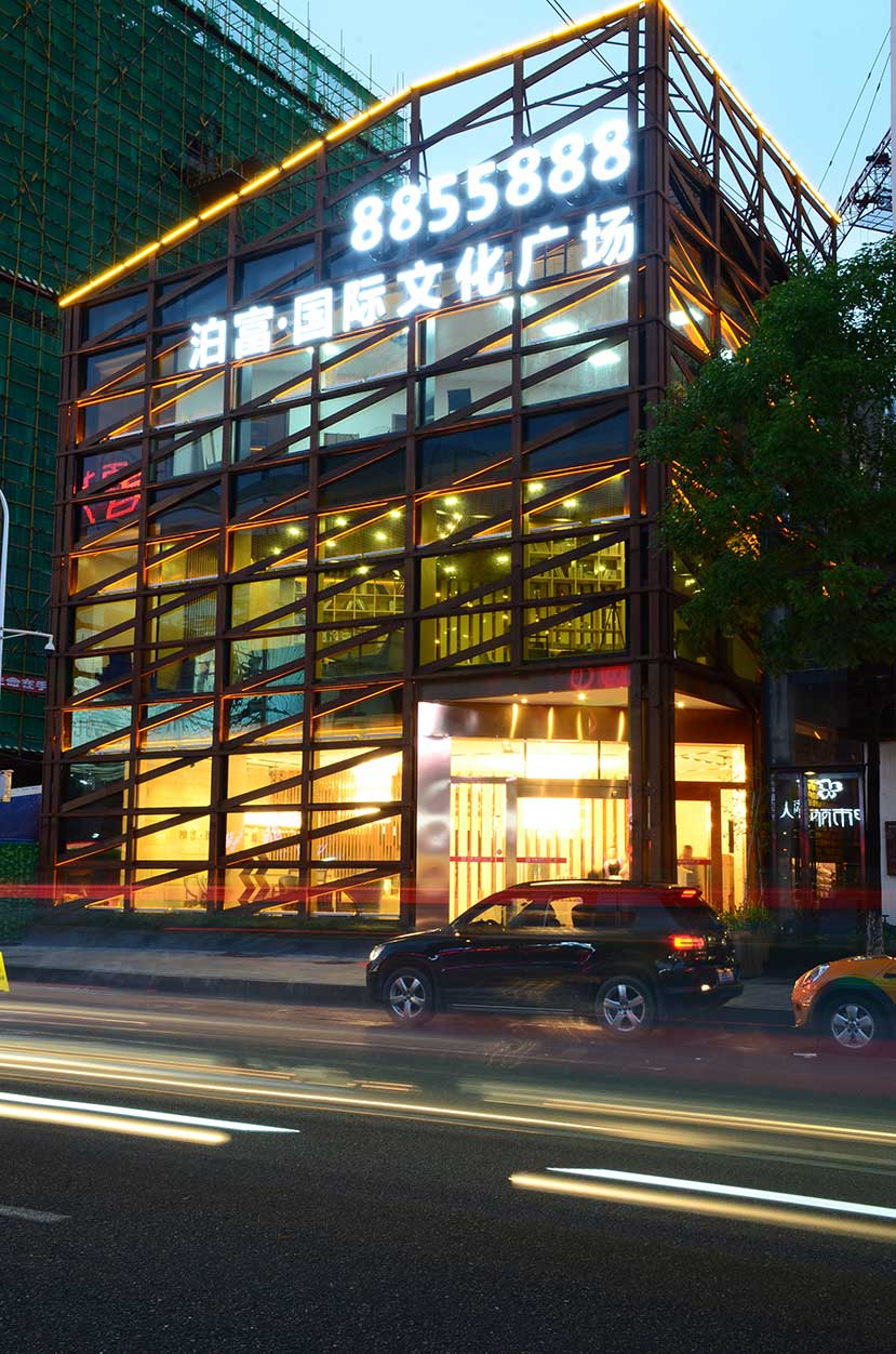 泊富·國際文化廣場項目位于國際旅游勝地張家界市中心,是目前張家界市最大的商業(yè)綜合中心。該項目營銷中心在設(shè)計之初即選擇桃花江戶外重竹材料,以竹材的環(huán)保性和文化厚重感來契合國際文化廣場的項目定位。該項目設(shè)計大膽、造型新穎并極富內(nèi)涵,已成為張家界市中心的標志性建筑。同時,該項目也是湖南首個運用戶外竹材作為裝飾主材的建筑單體,為湖南建筑設(shè)計領(lǐng)域在新材料運用方面做了成功示范。