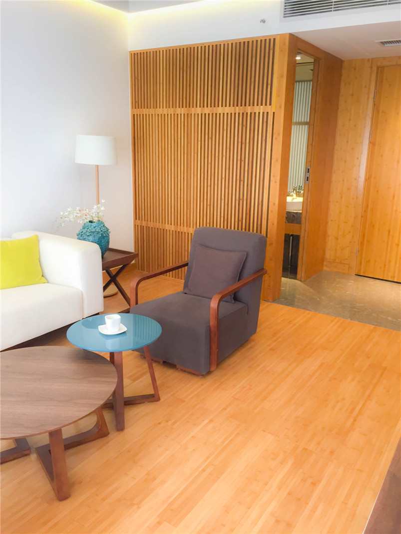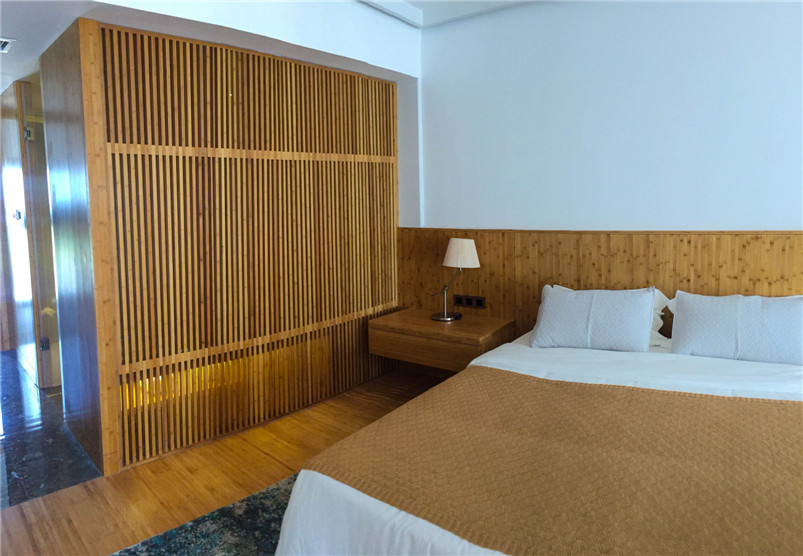 遠(yuǎn)大可建是遠(yuǎn)大科技集團(tuán)全資子公司,是全球持續(xù)建筑的先驅(qū)。基于對(duì)竹材的喜愛和對(duì)竹材環(huán)保的高度認(rèn)可,遠(yuǎn)大總裁張劍親自參與此次與桃花江竹材科技在其塔式酒店產(chǎn)品竹整裝項(xiàng)目的洽談。在遠(yuǎn)大可建汨羅工廠,酒店竹整裝三套樣板間安裝施工已基本完成,內(nèi)部裝飾全部在桃花江竹材科技工廠加工后運(yùn)至在現(xiàn)場組裝,地面鋪設(shè)竹地板,整體效果簡潔、自然、溫馨。遠(yuǎn)大總裁張劍視察樣板間后對(duì)竹材裝飾效果十分滿意,表示將加大對(duì)可建酒店竹整裝項(xiàng)目的研發(fā)與推廣,加強(qiáng)與桃花江竹材科技的深度合作,期望未來全世界每三幢新建建筑就有一幢是可建。