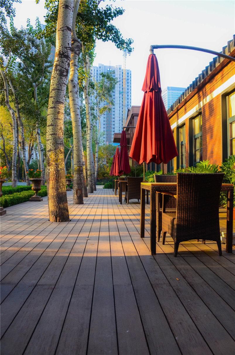 天房六合國際是由天津本土的房地產商天房集團建設的,天房六合國際位于天津河西區(qū)新八大里的六里地塊。桃花江竹材科技的戶外高炭防腐竹地板在該項目的沿街道路,園林景觀中大量運用,在陽光照耀下,地板與紅磚墻相互輝映,四周綠植鮮花環(huán)繞,樹木鑲嵌其中,頗有一股歐式小鎮(zhèn)的韻味。