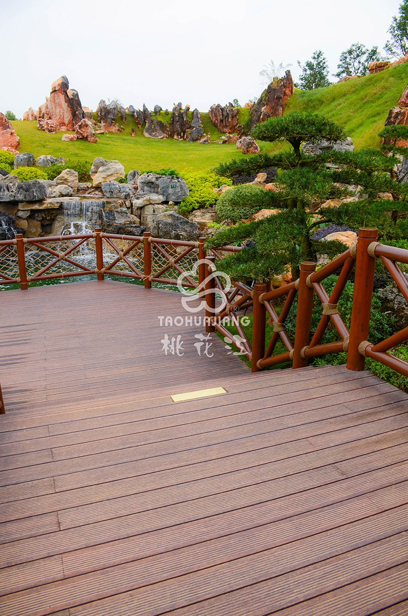 南寧園博園位于廣西南寧市五象新區(qū)五象湖公園,東起平樂(lè)大道,西至玉象大道,北起秋月路,南至鳳凰路,中間橫穿玉洞大道,占地面積約122公頃,其中陸地面積64公頃,水域面積58公頃,設(shè)計(jì)常水位為86.5米。園區(qū)內(nèi)棧道、親水平臺(tái)、景觀橋面、欄桿扶手大量使用桃花江戶外防腐竹材。