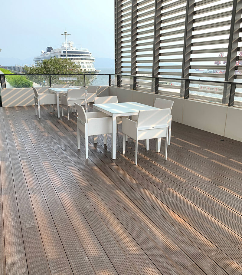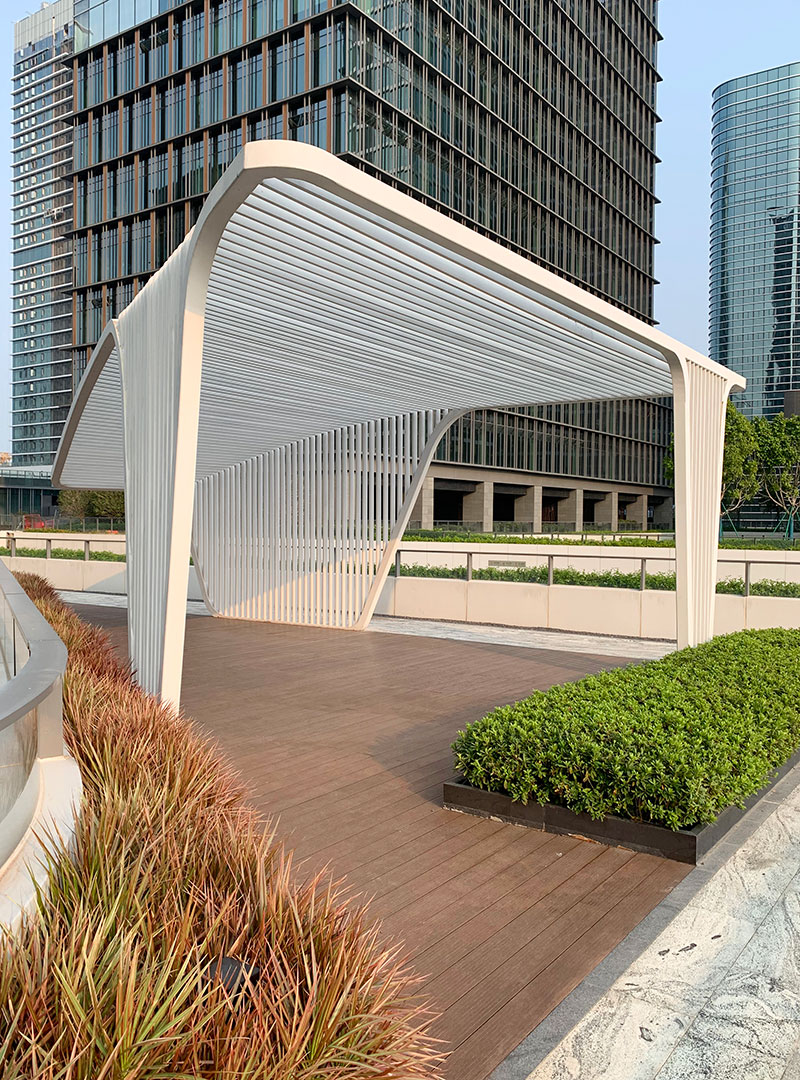 招商·深圳蛇口太子灣項(xiàng)目位于中國(guó)深圳蛇口自貿(mào)區(qū),立足深圳海上門戶——郵輪母港,占據(jù)深港中軸,擁有頂級(jí)的山海資源和海、陸、空、軌多方立體交通配套以及很好的市政、商業(yè)等配套資源。項(xiàng)目由頂級(jí)設(shè)計(jì)團(tuán)隊(duì)—SED新西林景觀設(shè)計(jì)定制,以“山、林、?!睘榫坝^設(shè)計(jì)主題,將前衛(wèi)的綠色設(shè)計(jì)、可持續(xù)發(fā)展思維帶到人們?nèi)粘<稗k公生活中,鼓勵(lì)人們多與大自然作出更緊密的對(duì)話。在室內(nèi)外的選材方面特別講究,既符合現(xiàn)代簡(jiǎn)潔的設(shè)計(jì)風(fēng)格,又能體現(xiàn)清新自然的藝術(shù)氛圍,給人舒服安適的居住體驗(yàn)。 桃花江竹材的戶外竹材由合理采伐不破壞生態(tài)的竹子材料加工而成,加工過(guò)程不污染環(huán)境,廢棄后可自然降解,恰好契合了綠色環(huán)保、可持續(xù)發(fā)展理念,因此在項(xiàng)目中得到了很好的應(yīng)用,如屋頂花園的竹木地板、竹木休閑座椅,觀景臺(tái)、親水平臺(tái)等,與周邊的場(chǎng)景融合,打造出宜居、宜業(yè)、宜商、宜游的國(guó)際濱海城區(qū)環(huán)境。照片拍攝于項(xiàng)目完工一年半后。