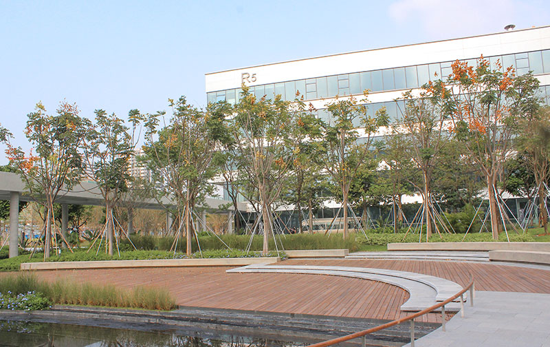 vivo全球總部項(xiàng)目位于東莞市長安鎮(zhèn)新安社區(qū),由中國建筑設(shè)計(jì)研究院負(fù)責(zé)全部建筑設(shè)計(jì)和景觀設(shè)計(jì)。設(shè)計(jì)師設(shè)計(jì)了一系列清晰、簡潔的幾何形體和空間,由一套連廊系統(tǒng)將它們有機(jī)連為一體,每一個(gè)空間獨(dú)特但不孤立,緊密地聯(lián)接于空間體系之中,充分考慮了便利性、舒適度、美觀和空間張力,塑造了豐富的室內(nèi)空間、露臺、庭院、廣場、公園……,容納工作、居住、游憩、交通于一體,承載著vivo人全天候的工作與生活。園區(qū)中大量采用了桃花江的戶外竹材,涼亭、廣場地板、護(hù)欄扶手和休息座椅等區(qū)域都有分布,承載著職工們的交流、休閑、運(yùn)動、Party和沙龍等功能,使他們工作更高效,生活更健康。