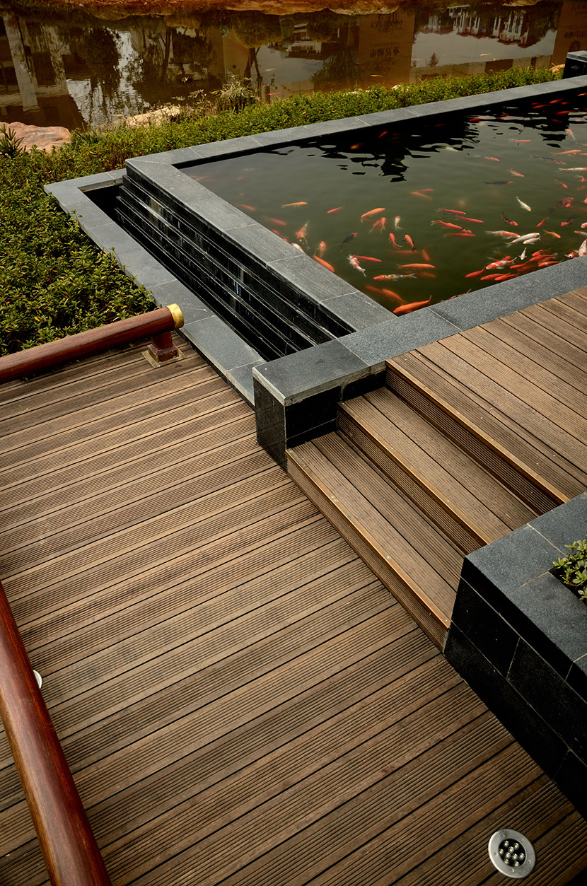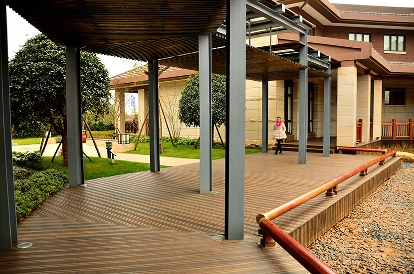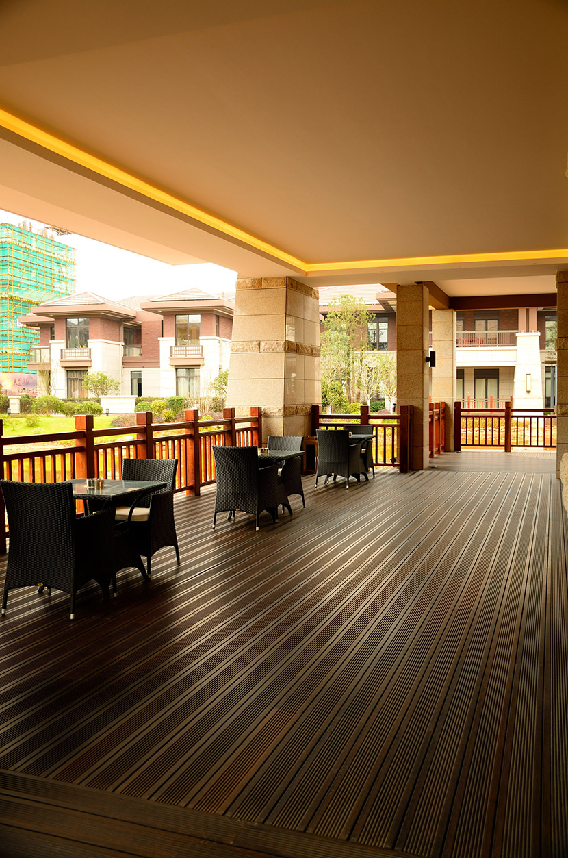 華融山水苑是由實(shí)力央企華融置業(yè)在湘潭傾力打造的首個(gè)高端別墅項(xiàng)目。桃花江竹材科技的高炭防腐戶外地板在該項(xiàng)目營(yíng)銷中心、園林景觀及別墅樣板區(qū)大量運(yùn)用。 高端地產(chǎn)項(xiàng)目青睞環(huán)保竹材不僅是因?yàn)槠洳牧系母攮h(huán)保和高品質(zhì),更深層的原因在于通過(guò)竹材的運(yùn)用將竹文化、中式園林以及中國(guó)文化三者有機(jī)結(jié)合,經(jīng)建筑的語(yǔ)言傳遞出項(xiàng)目厚重的文化底蘊(yùn)從而提升項(xiàng)目的高端形象。這是其它材料無(wú)法與竹制材料相提并論的重要原因,也是竹制材料的精髓所在,桃花江竹材科技不僅僅是一種材料生產(chǎn)者,更是一種文化的傳承者。