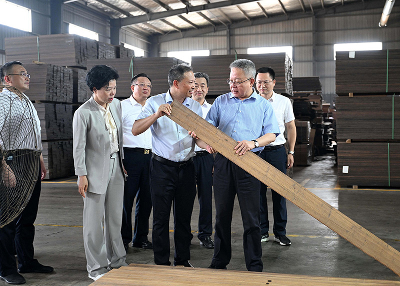 <p>2025年6月16日，省政协副主席虢正贵来湖南桃花江竹材科技股份有限公司调研生态资源转化与特色产业融合发展。公司董事长、省人大代表薛志成陪同并介绍情况。虢正贵充分肯定了桃花江竹材在竹资源利用及竹特色产业融合发展所取得的成果，他鼓励企业继续发挥龙头优势，充分利用好桃江资源禀赋和产业优势，深化产学研融合，提升竹产业附加值，为民族地区生态资源高效转化和特色产业融合发展探索更多经验。</p>
