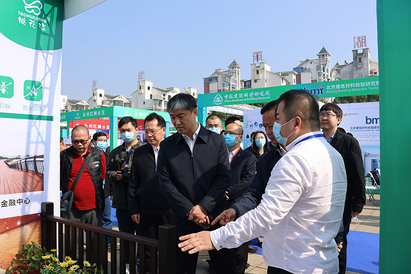 工業(yè)和信息化部原材料工業(yè)司副司長邢濤,省工信廳廳長雷紹業(yè)一行在桃花江竹材展位前認真參觀了解