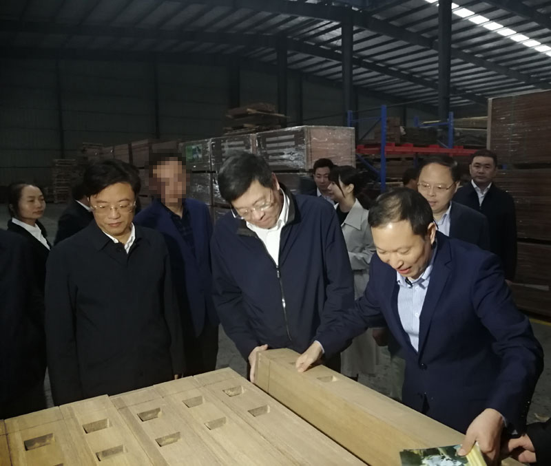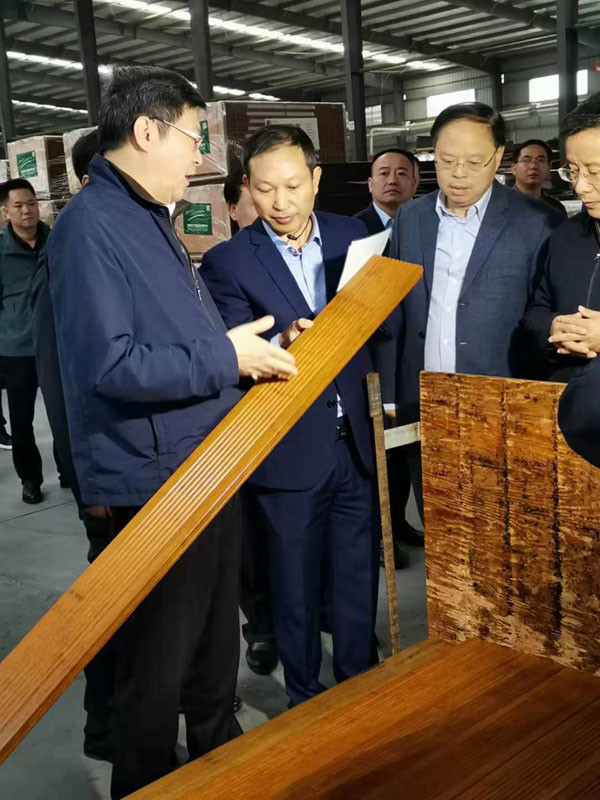 2019年10月15日,湖南省省委書(shū)記、省人大常委會(huì)主任杜家毫一行蒞臨我司考察調(diào)研,這也是他任職湖南省后第二次造訪桃花江竹材。湖南省委常委、湖南省委秘書(shū)長(zhǎng)張劍飛,益陽(yáng)市市委書(shū)記瞿海、益陽(yáng)市市長(zhǎng)張值恒等相關(guān)部門(mén)領(lǐng)導(dǎo)陪同調(diào)研。在公司董事長(zhǎng)薛志成的陪同下,杜書(shū)記一行深入我司戶(hù)外竹材生產(chǎn)車(chē)間一線調(diào)研,對(duì)我司生產(chǎn)經(jīng)營(yíng)、人才培養(yǎng)、科技創(chuàng)新和新產(chǎn)品開(kāi)發(fā)等方面進(jìn)行了調(diào)研。杜書(shū)記仔細(xì)端詳公司產(chǎn)品,詳細(xì)詢(xún)問(wèn)產(chǎn)品的生產(chǎn)流程,應(yīng)用領(lǐng)域和銷(xiāo)售情況,他對(duì)公司擁有戶(hù)外防腐竹材、竹地板、竹墻板等10余項(xiàng)國(guó)家授權(quán)發(fā)明專(zhuān)利的研發(fā)能力表示贊賞,他說(shuō) :"我們需要的就是像桃花江竹材這樣的企業(yè) ,有較強(qiáng)的自主研發(fā)能力,生產(chǎn)的戶(hù)外竹材產(chǎn)品,環(huán)保又可持續(xù)發(fā)展,市場(chǎng)前景巨大,發(fā)展竹產(chǎn)業(yè)又能帶動(dòng)周邊竹農(nóng)致富,政府表示大力支持,前不久出臺(tái)的那個(gè)湖南農(nóng)業(yè)優(yōu)勢(shì)特色千億產(chǎn)業(yè)行動(dòng)方案就部署了對(duì)楠竹產(chǎn)業(yè)的發(fā)展規(guī)劃,希望桃花江竹材作為竹產(chǎn)業(yè)的龍頭企業(yè),能充分發(fā)揮引領(lǐng)帶頭作用,提升竹產(chǎn)業(yè)的科技創(chuàng)新能力,為把竹產(chǎn)業(yè)做大做強(qiáng)貢獻(xiàn)更大的力量。"